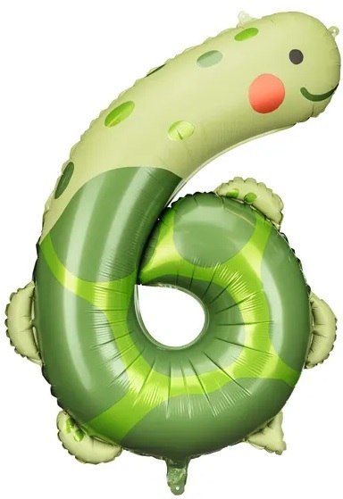 Balon foliowy urodzinowy cyfra "6" - Żółw 57x86 cm