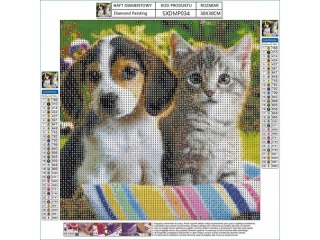 HAFT DIAMENTOWY, OBRAZ, MOZAIKA DIAMENTOWA DIAMOND PAINTING, SZCZENIAK Z KOTKIEM 30X30CM