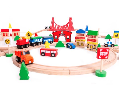 Drewniana kolejka na baterie 90 elementów ECOTOYS