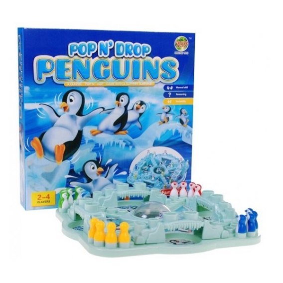 POP N' DROP PENGUINS to gra planszowa oparta na zasadach popularnej gry „chińczyk". Ale na tym podobieństwa się kończą. Jeśli od dawna szukałeś gry innej niż wszystkie, to dobrze trafiłeś.