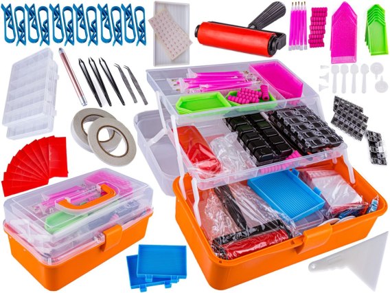 HAFT DIAMENTOWY AKCESORIA DO DIAMOND PAINTING OGROMNY ZESTAW KUFEREK 574 ELEMENTY