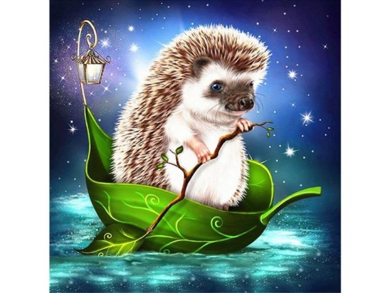 HAFT DIAMENTOWY, OBRAZ, MOZAIKA DIAMENTOWA DIAMOND PAINTING, JEŻYK NA LISTKU 30X30CM
