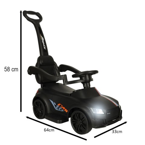 Jeździk pchacz samochód 3w1 z dźwiękiem i światłami czarny