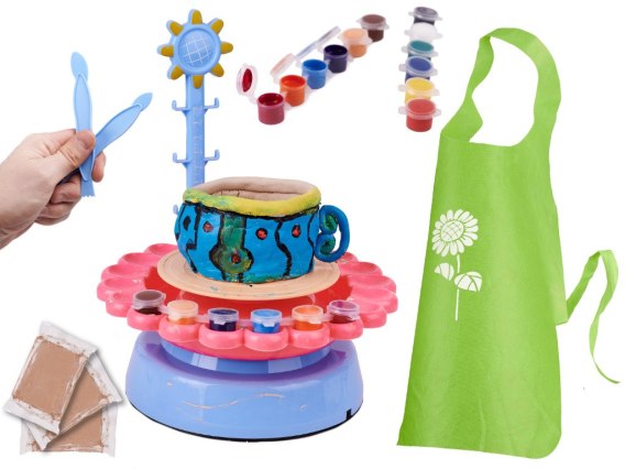 Świetny zestaw z obrotowym kołem garncarskim zapewni mnóstwo zabawy dla każdego dziecka, które lubi manualne zabawy!