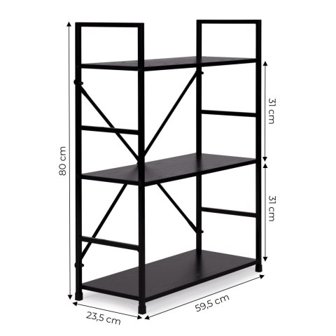 Regał drewniany metalowa rama szeroki LOFT 3 półki czarny ModernHome