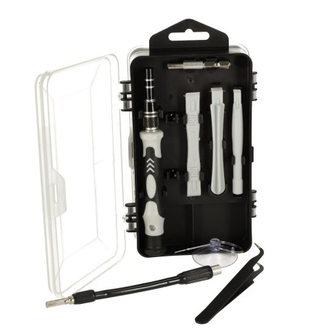 wkrętaka, pęseta, przyssawka do demontażu szkła, otwieracze do obudowy, kluczyk